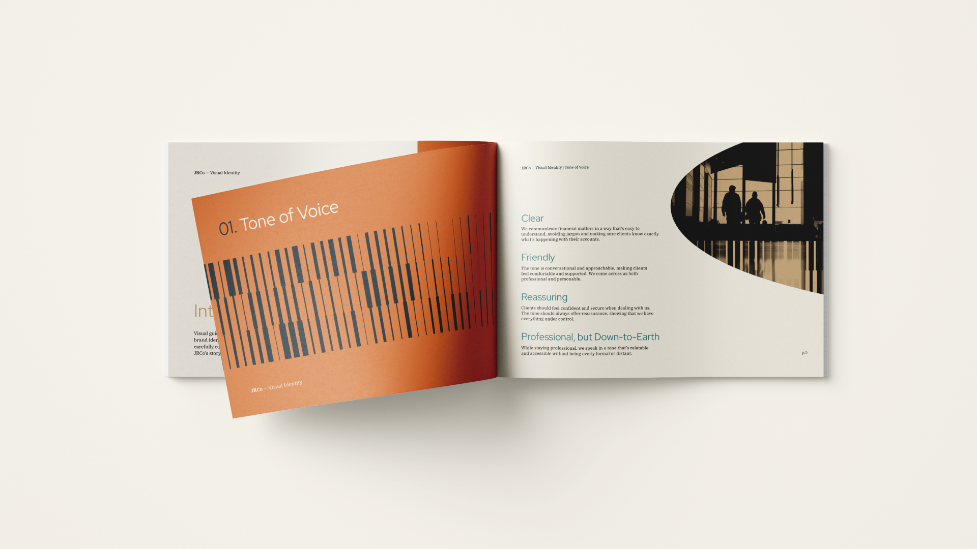 Through discovery sessions (and a few great chats), we unearthed Joe’s twin passions – finance and music – and used them to shape his new identity. We designed a visual language inspired by both: the grooves around the edge of a coin, the shapes of piano keys, even a falling coin doubling as a musical note. Nice. And unmistakably JRCo.
